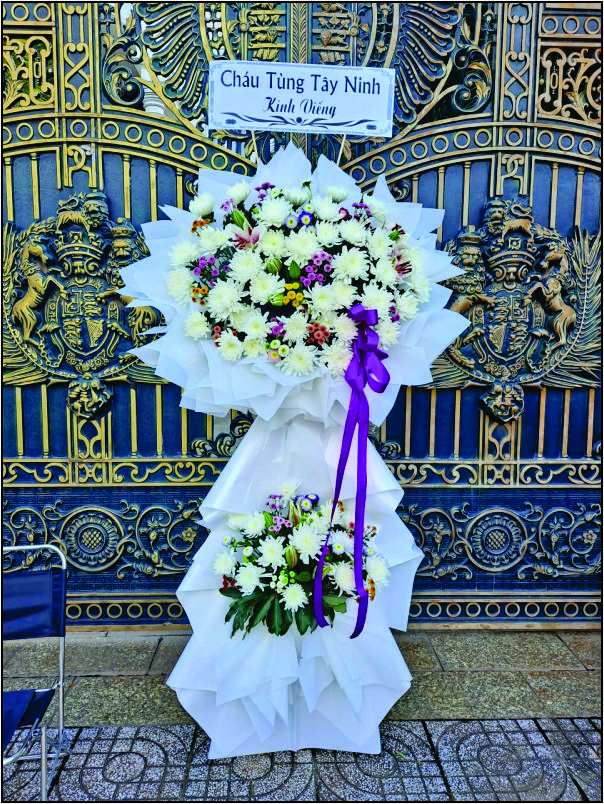 Kính Nhớ V 4246 tươi là sự xoa diệu, chia sẽ nổi đau buồn, mất mát lớn lao với người ở lại , với những gam màu : tím , trắng, Vàng, như lời tiễn biệt trân trọng, chân thành dành cho người quá cố .